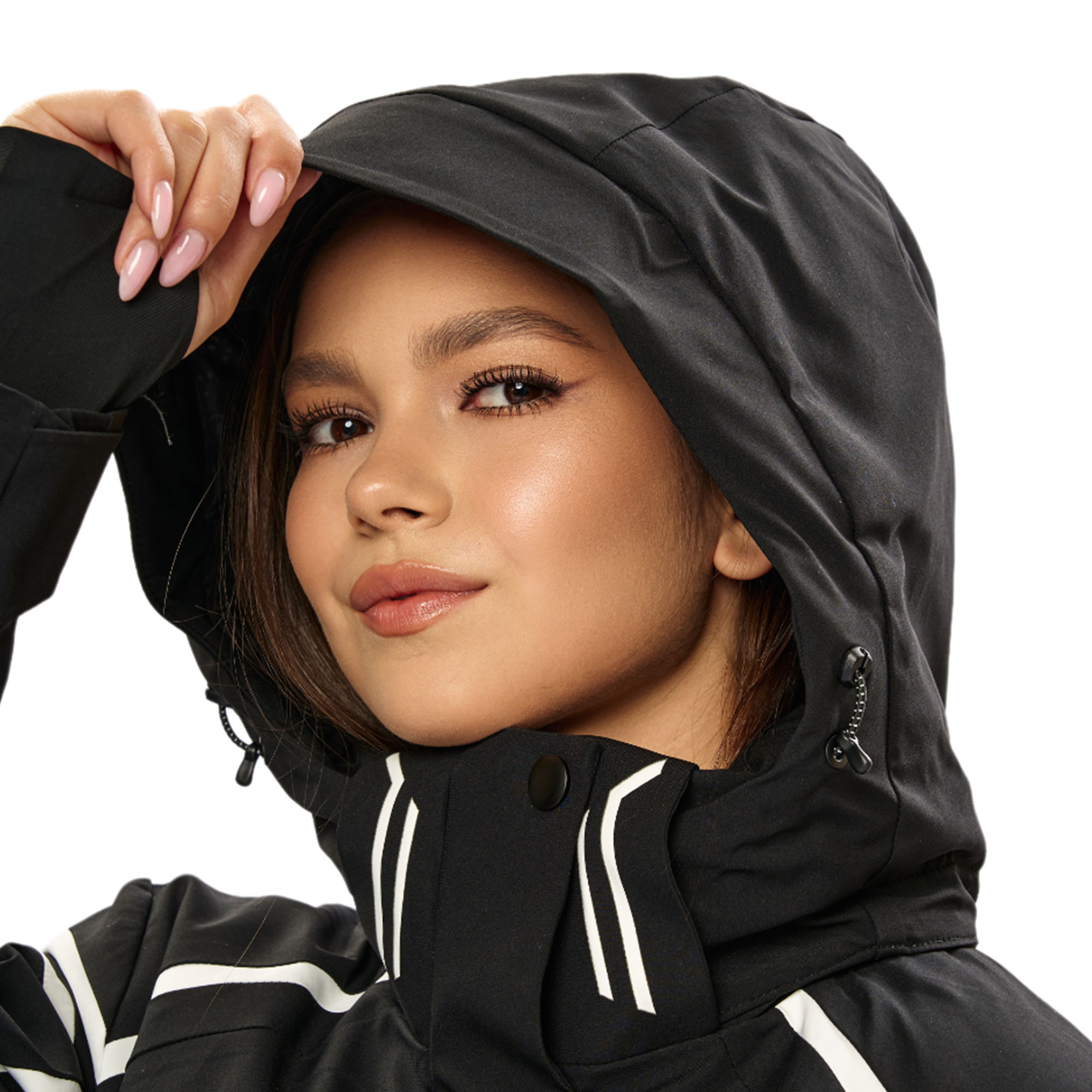- Высокий воротник с капюшоном