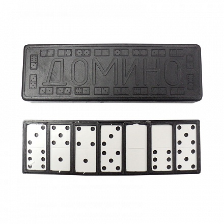 Домино в самом классическом варианте, в который еще играли наши бабушки и дедушки. Домино отличный повод провести вечер в семейном кругу. Несложные правила будут понятны даже детям. Игроки берут по несколько костей, остальные лежат в запасе лицевой стороной вниз. Первым выкладывается максимальный дубль, потом все по очереди присоединяют к нему подходящие кости с одинаковыми цифрами. Если у игрока нет подходящей кости, он берет ее из запаса. Побеждает в раунде тот игрок, кто первым избавится от всех своих костей. В коробочке 28 костей.
